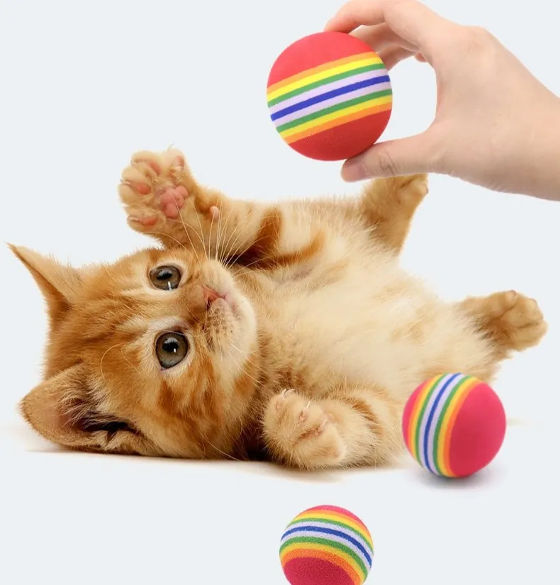 Подари на своята котка часове активно забавление с тези цветни топки от дъгова пяна! Изработени от мека EVA пяна, те са леки, безопасни и приятни за хващане, дори от най-малките лапички.