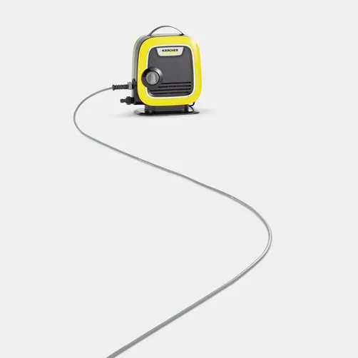 Компактна и лека: К Mini – най-малката водоструйка на Kärcher. Благодарение на малките си размери е много удобна за транспортиране и съхранение. Перфектна за почистване на балкони, градини, градински мебели, колелета и малки коли. Водоструйката е изключително лесна за сглобяване – пистолета, удължителя и струйника Vario Power се сглабят само в няколко стъпки. Маркучът за високо налягане също се монтира много лесно благодарение на системата Quick Connect. Дългият пет метра, много тънък маркуч за високо налягане не се оплита и предлага максимална свобода на използване на машината. Когато приключите с почистването захранващият кабел може да бъде навит около корпуса на уреда и захванат с клипс. Поради малките си размери K Mini може да се съхранява удобно както на закрито, така и на открито.